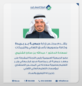 يتقدم مجلس إدارة جمعية بر بريدة وكافة منسوبيها بأصدق التهاني والتبريكات