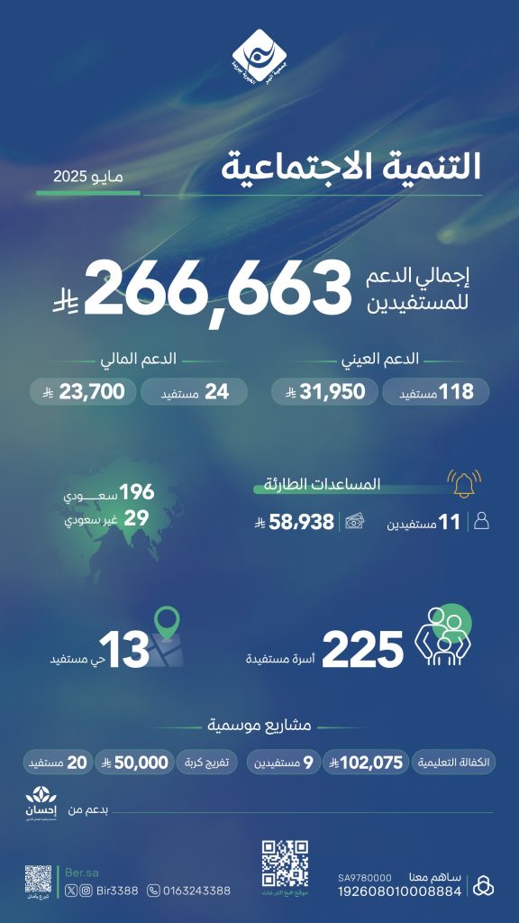 من أبرز إنجازات التنمية الاجتماعية في بر بريدة لشهر مايو 2025م