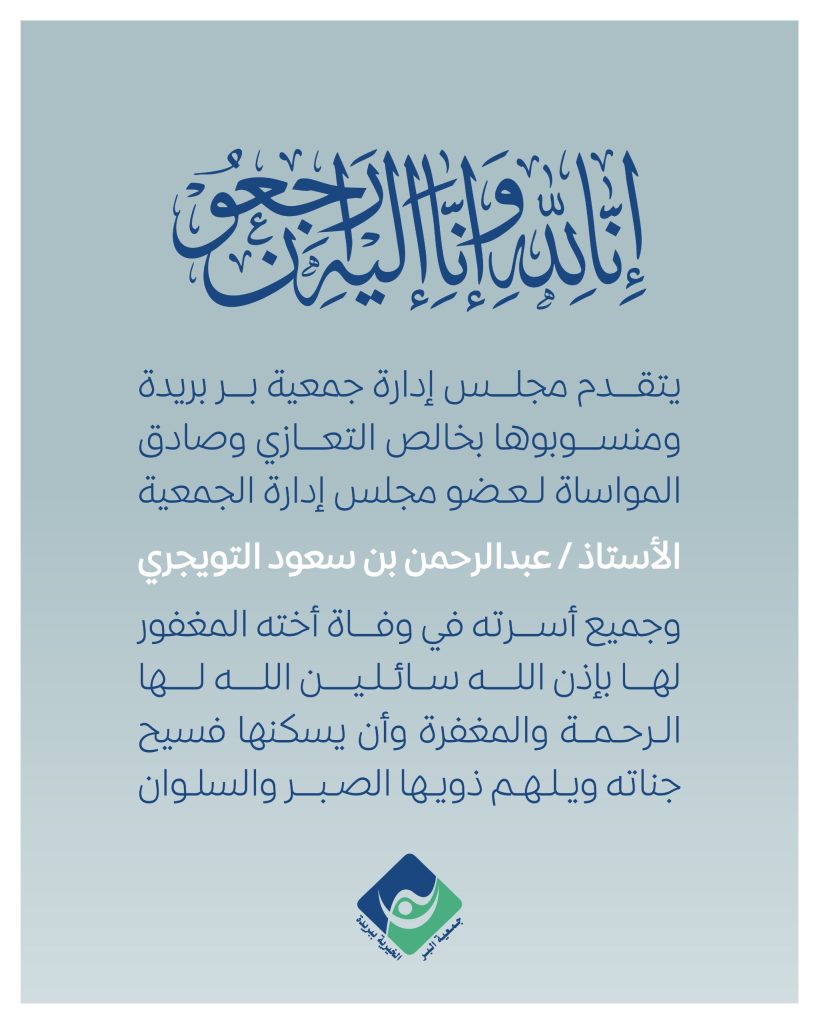 يتقدم مجلس إدارة جمعية بر بريدة ومنسوبوها