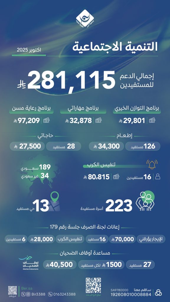 أبرز إنجازات إدارة التنمية الاجتماعية لشهر اكتوبر 2025م